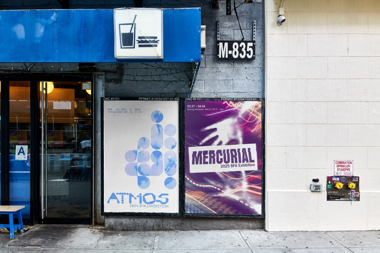 This series includes two fictional exhibition branding projects for the UCF art gallery completed as design sprints. I created posters that visually express each exhibit’s theme while maintaining cohesion across digital and print formats. These fast-paced projects challenged me to make quick, intentional design decisions while building adaptable and engaging visual identities that fit the open–ended theme.
